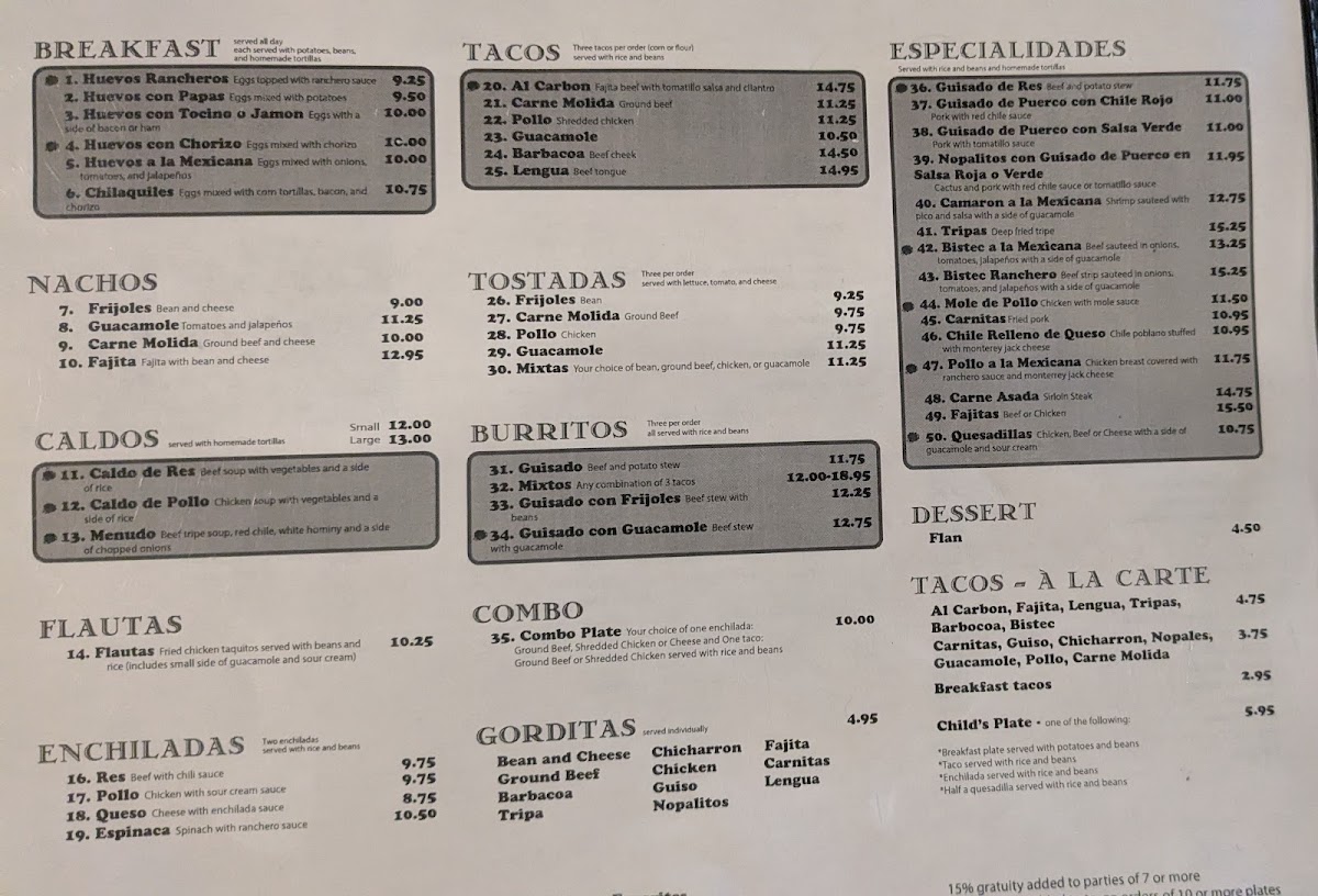 The menu is a feast for the senses, featuring mouth-watering options that are sure to please every palate. Don’t miss the enticing Gorditas, where options like the Chicken Fajita Gordita and Chicharron Gordita shine with their generous fillings and expertly prepared textures. At just $6.00 and $5.50 respectively, you’re in for a treat that won’t break the bank. For taco lovers, the selection is equally impressive; try the Bistec Taco or the Carnitas Taco, each brimming with flavor and authenticity.